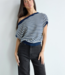 Beoordeel Abrand Top cold shoulder knit, Blue stripe